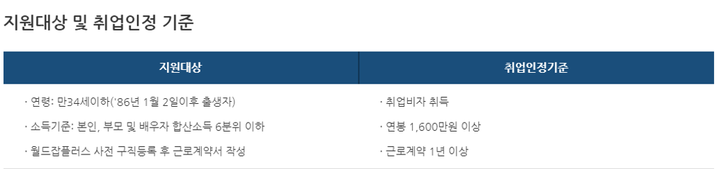 지원대상 및 취업 인정 기준