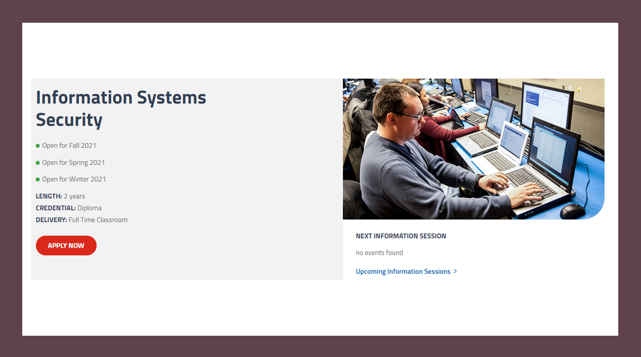 캐나다 캘거리에 위치한 SAIT의 정보 시스템 보안학과는 기본적인 네트워크, 시스템, 프로그래밍에 대한 전반지식이 있는 학생들이 이러한 기술을 보안에 적용함으로써 보안 전문가로 성장하기 위한 기술을 배울 수 있는 학과입니다.