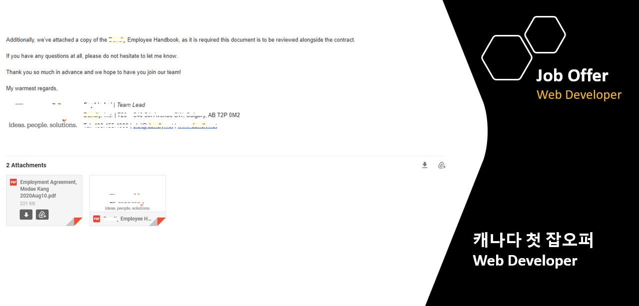 졸업하고 3개월 그리고 10일이 지난 시점에 드디어 캐나다에서의 첫 Job Offer를 받았다.