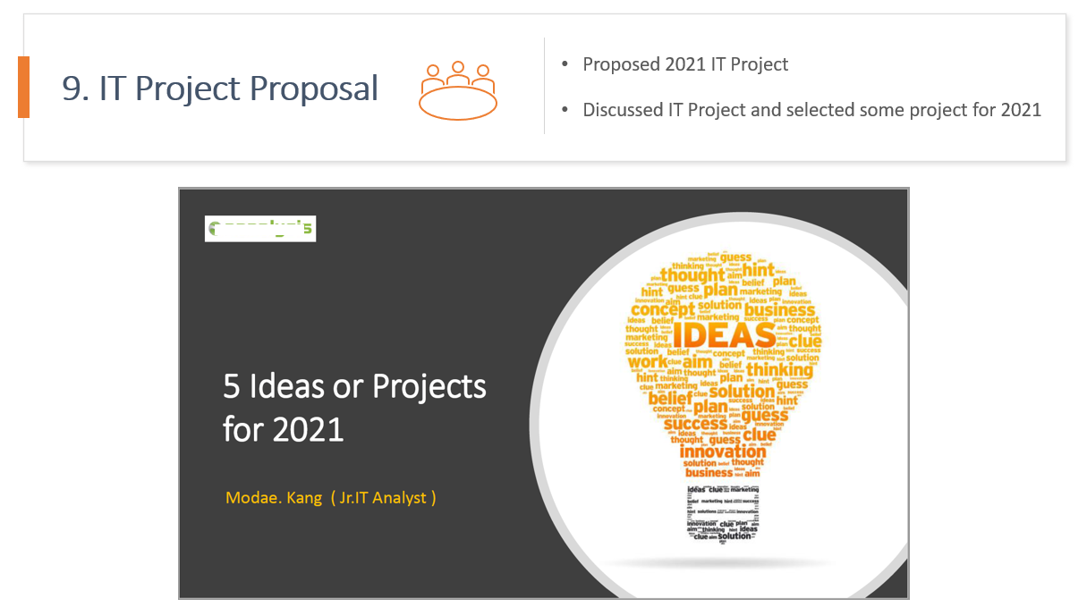 마지막으로, IT Analyst로서 가장 중요한 것중 하나인 다음년도에 진행할 IT Project에 대해 제안하는 것입니다.