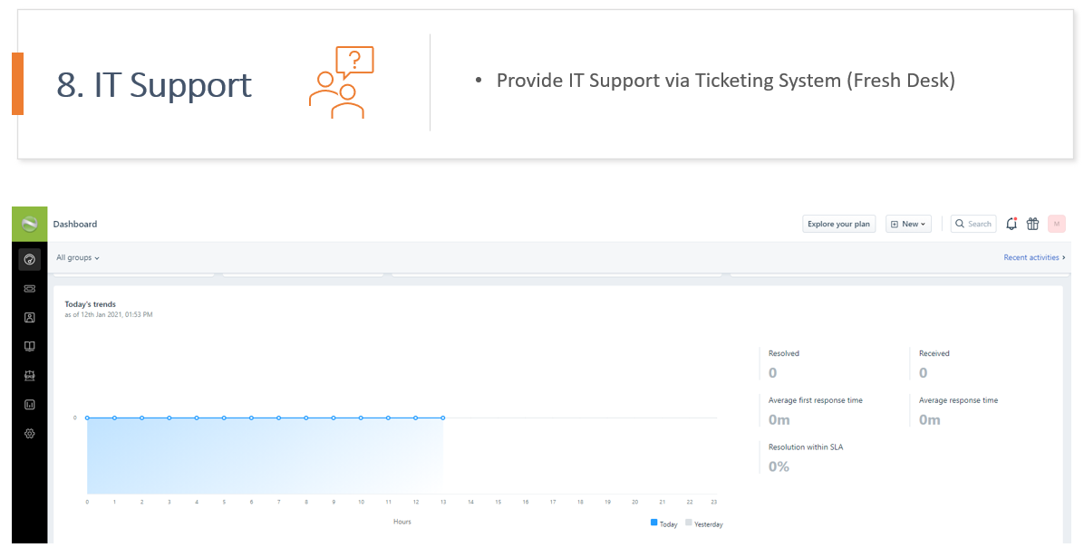 IT 부서의 기본적인 업무인 IT Support 업무도 같이 진행하였습니다. Fresh Desk라는 Ticketing 시스템을 사용중인데, 여러가지 이슈들과 여러가지 사용에 불편한 점들이 많아 2021년도에는 새로운 Ticketing 시스템을 조사하게 될 것 같습니다.