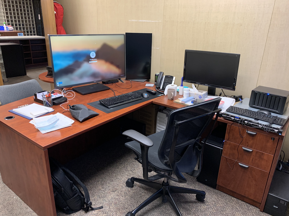 하지만, 재택근무 중에도 가끔씩 나와야 할 경우가 존재했다. 새로운 서버 셋팅, IT 장비 이슈, 새로운 직원 고용 등등... 그럴경우 이용할 수 있게 임시로 사무실 하나를 사용하게 됐다. 실은 매니저가 사용하는 사무실이지만, 임시로 같이 사용하게 됐다. 보통 둘중 한명만 나오면 되기 때문에 이렇게 공간을 같이 공유하게 됐다.