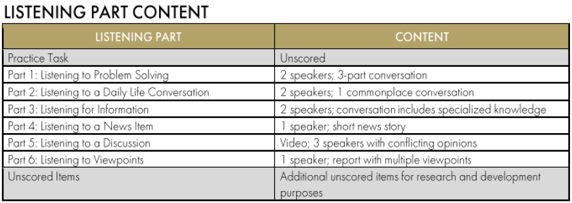 CELPIP LISTENING은 총 6개의 파트로 구성되어 있습니다.