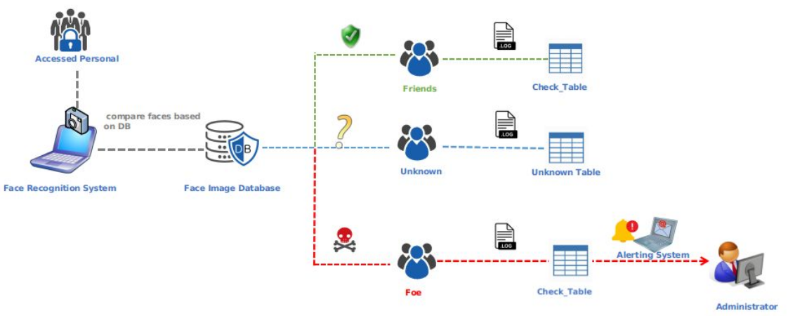 - 이 프로젝트의 주된 목표는 제한된 구역에 놓을 수 잇는 안면 인식 시스템 개발