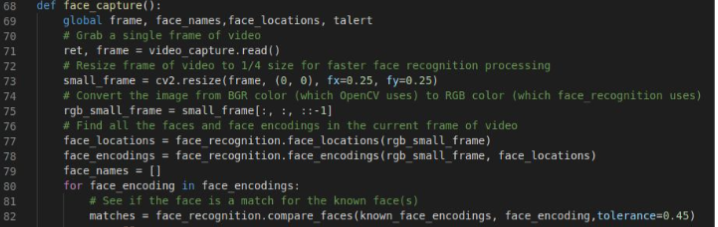 정확성과 속도를 동시에 잡기 위해 우리는 OpenCV에서 hear_cascade 기능과 Dlib의 face_recognition 기능을 활용했습니다. 이로 인해 코드가 더 복잡해지고, 수 많은 에러를 고쳐야 했습니다.
