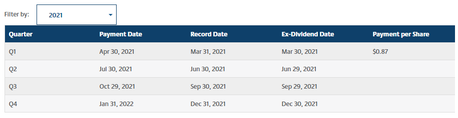 자세한 배당금 주기, 금액 그리고 배당일 일정은 아래 표를 참고해주세요.