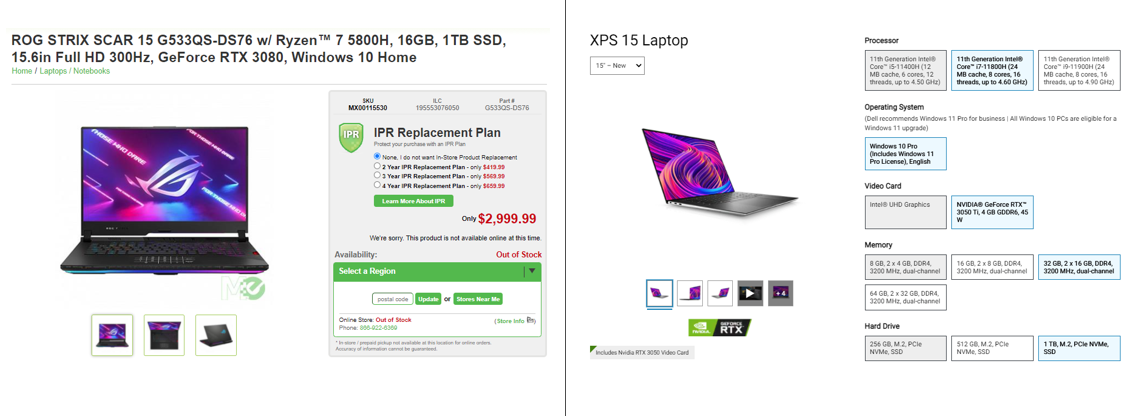 | DELL XPS 9510 | ASUS ROG STRIX SCAR | |
