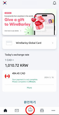 그럼, 간단하게 와이어바알리를 이용하여 해외송금을 진행하는 방법에 대해 알아보겠습니다. 아래 이미지는 와이어바알리 어플을 기준이기 때문에 홈페이지에서 진행시 약간 이미지와는 다른 화면을 보실 수도 있으니 참고해주세요.